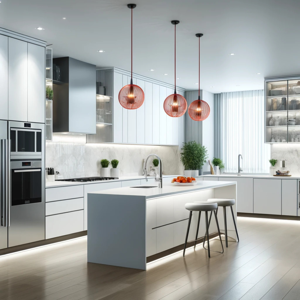 - Emplacement des luminaires – Comme il sera difficile de changer l’emplacement des luminaires encastrés une fois installés, il vaut mieux bien planifier cette étape. Au lieu de distribuer l’éclairage à travers le plafond, pensez aux espaces qui ont vraiment besoin d’éclairage: les aires de travail, l’îlot de cuisine, les armoires (placez-les à 20 cm des armoires) ou le bas d’un escalier.