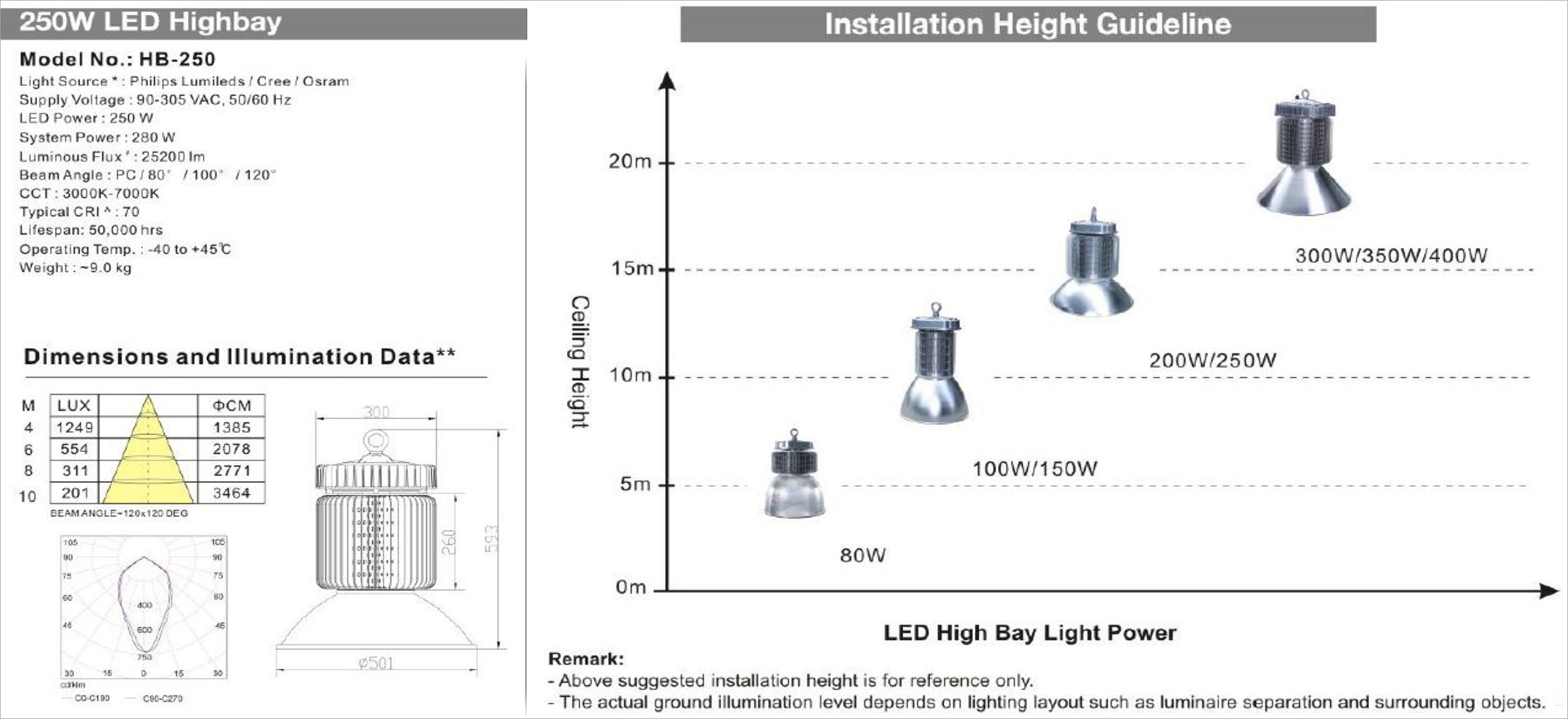 The LuxWerx HB-250 LED Highbay has unique patented thermal management design to lower LED junction temperature. It has dust prepvention feature.